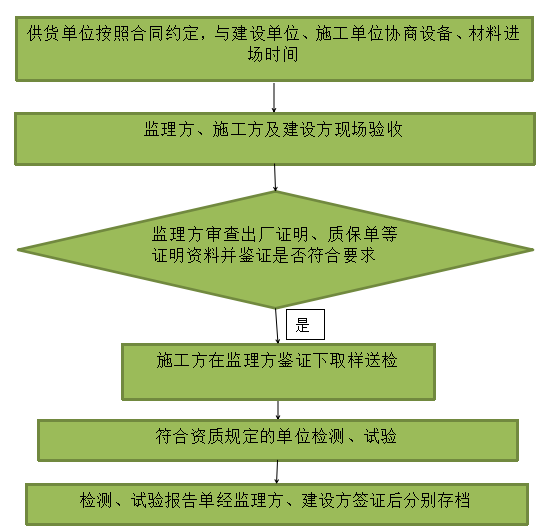 下圖為設(shè)備材料進(jìn)場(chǎng)基礎(chǔ)驗(yàn)收程序: