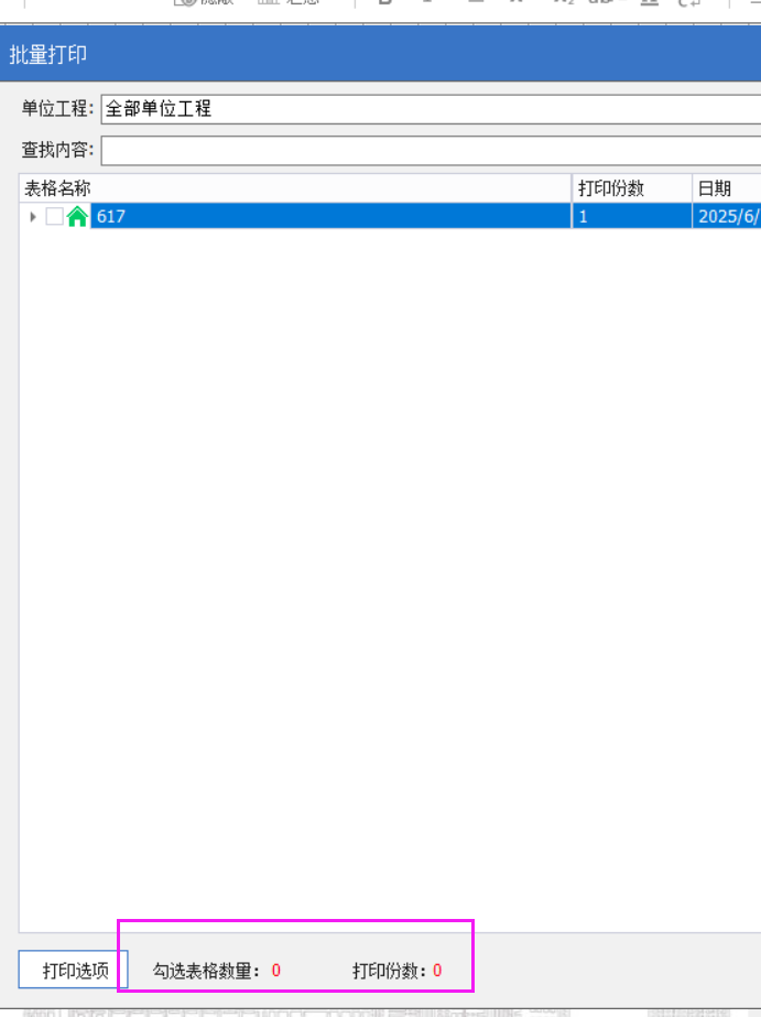 可以批量打印,勾選了要打印的表后,會(huì)顯示表格數(shù)量