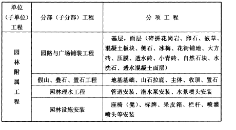 園林分部分項(xiàng)劃分具體參照CJJ82-2012(筑業(yè)網(wǎng)可下載)。