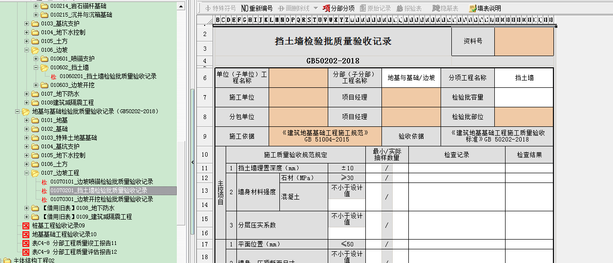 您好!毛石油擋土墻檢驗批在云南的軟件里只有一個檢驗批的表。