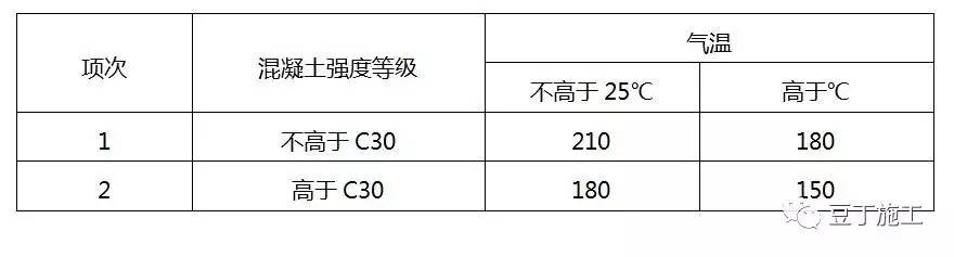 注:當(dāng)混凝土中接有促凝或緩凝型外加劑時,其允許時間應(yīng)根據(jù)試驗結(jié)果確定。