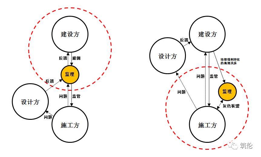 監(jiān)理的理想定位(左)和實(shí)際作用(右)